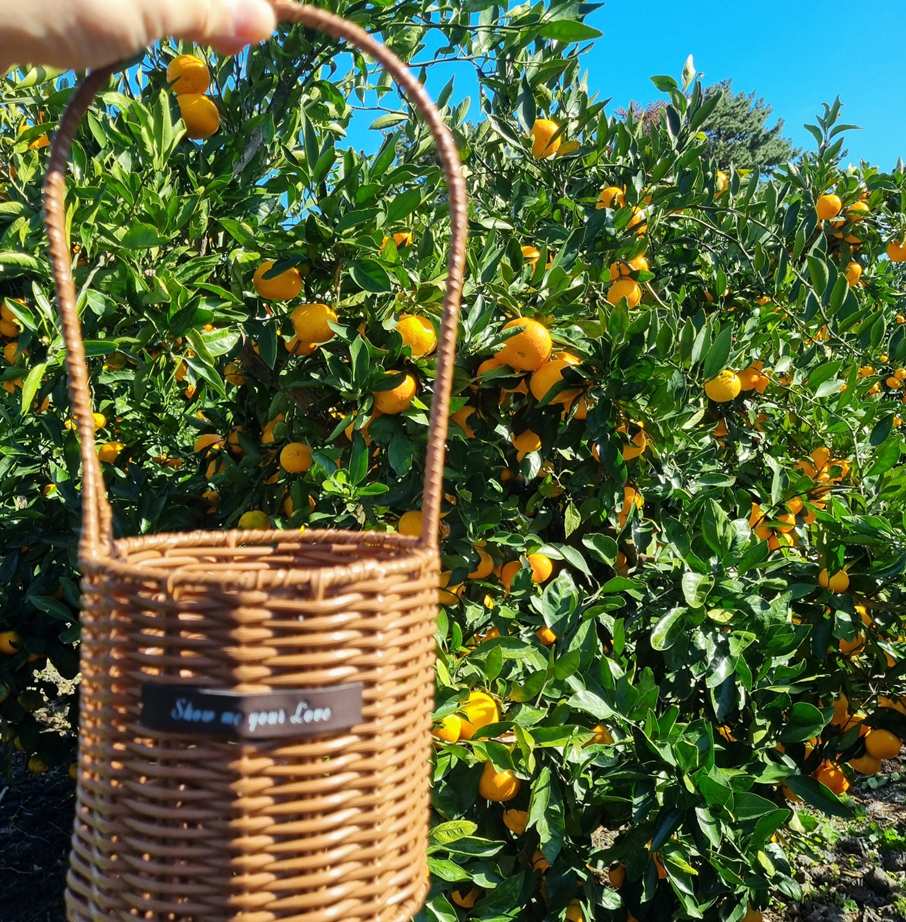 작은 바구니 1kg 9,000원으로 감귤 체험을 시작했습니다.