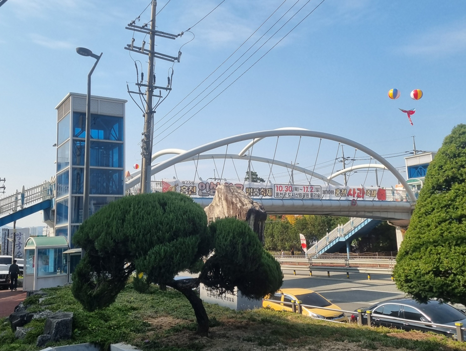 주차를 하고 오랜만에 보이는 육교를 지나서