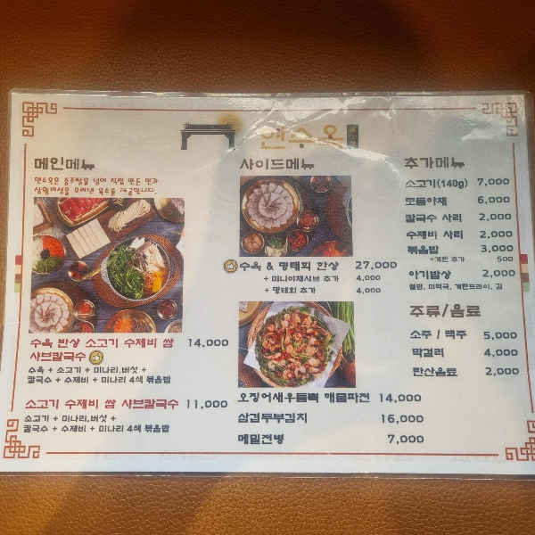 연수옥 메뉴