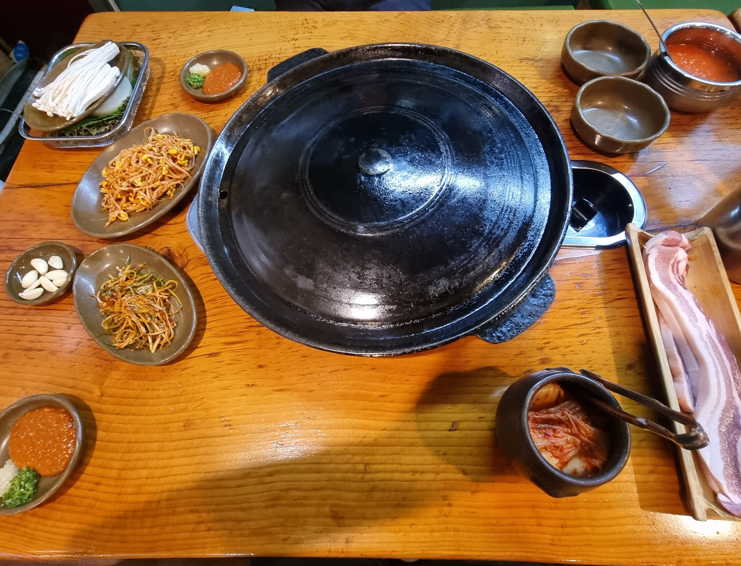 솥뚜껑 삼겹살 집으로 생각보다 사람도 많고 금요일에는 대기도 발생하기도 합니다!