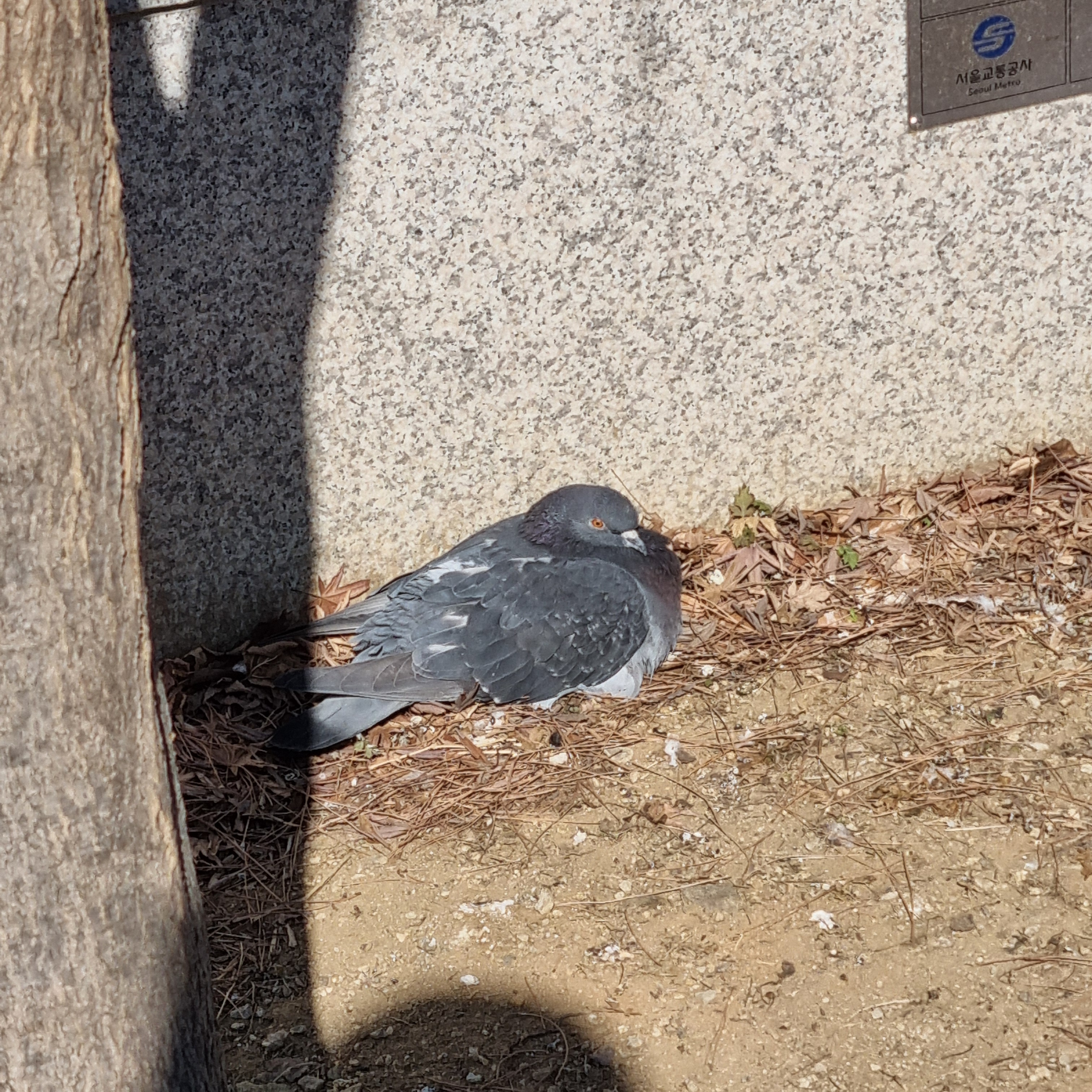 햇빛이 들어오는 따뜻한 자리를 점유하고 있는 비둘기의 모습으로 마무리하겠습니다.