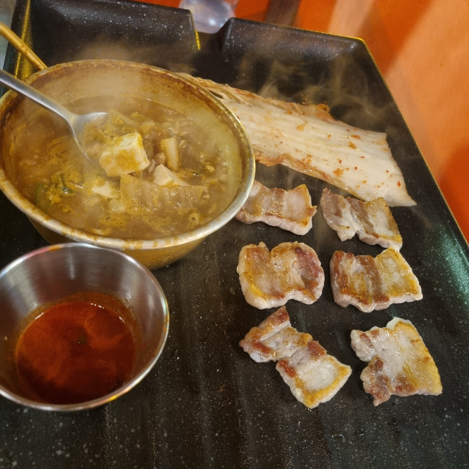삼겹살이 구워질 때, 세상의 걱정도 녹아내리는 법이죠.